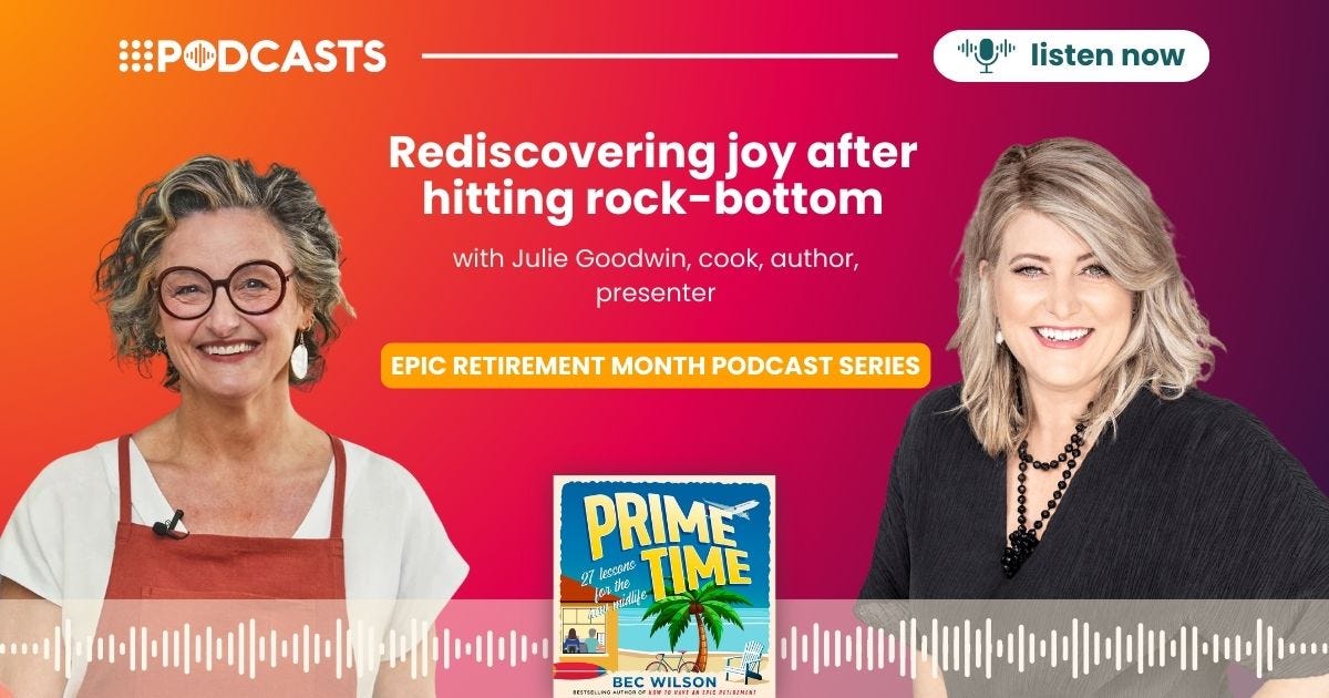 In a VERY SPECIAL episode, I sit down with the legendary Julie Goodwin. She tells me how she began to re-build her life, bit by bit, & slowly rediscover her sense of joy.