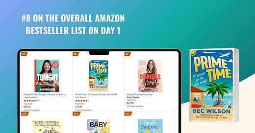 Prime Time: 27 Lessons for the New Midlife is available EVERYWHERE now: Big W, Kmart, Target, all your favourite indie bookstores, Amazon, Booktopia, all the major bookstore chains; ebook, audiobook… the lot. But, help me give Amazon a nudge - if you would today. 😉 That bestseller list number is exciting.